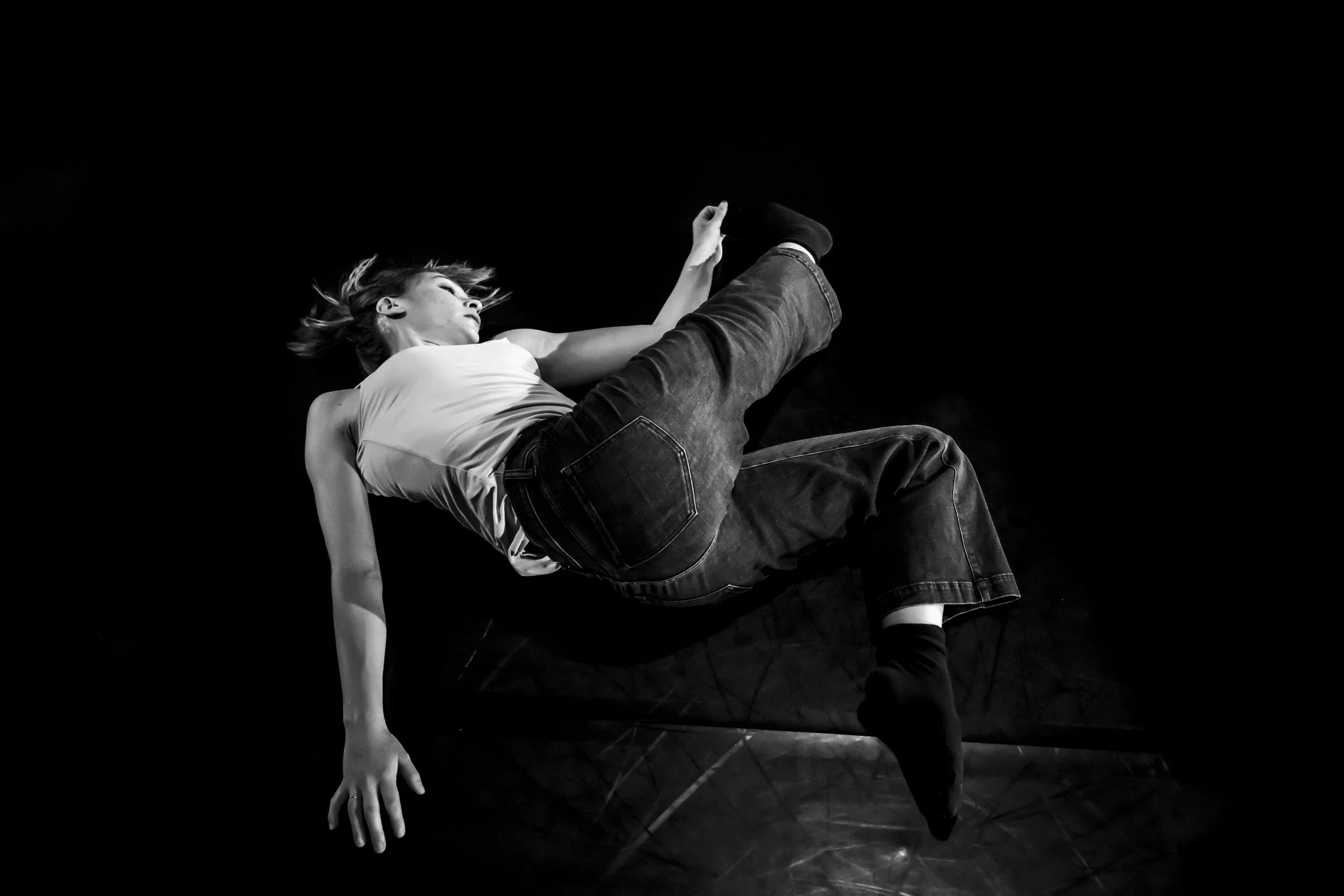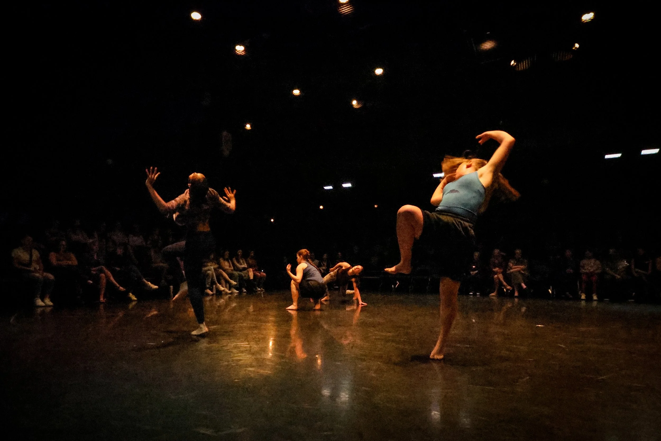 Colliding, morphing, and binding – Sinew thickens the space between bodies and vibrates the invisible tissues between us. We amplify the sensitivity of our receptors so that each pulse catalyzes and shifts our mode of being. On an ever-changing ride of urgent momentum, Sinew tips us to our edge and throws blasts into our pathways. It cultivates a collective body between performers and witnesses that heaves and vibrates, urging an adaptive tensegrity that resonates beyond the choreographic world.